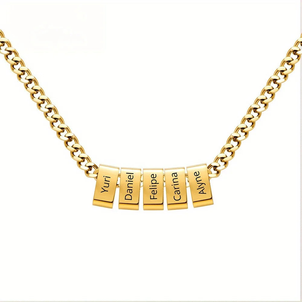 Make your mark with the Custom Engraved Name Block Necklace, a sleek and modern way to carry the names that matter most. Each cube pendant can be engraved with a custom name or word, creating a one-of-a-kind piece that tells your story.